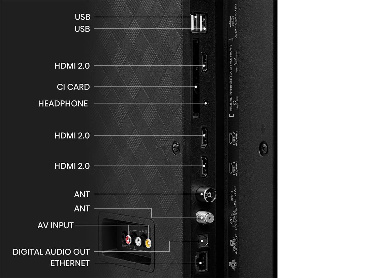 • Conectividad avanzada: Wi-Fi 5, Ethernet, Bluetooth 4.2, 3 HDMI 2.0, eARC, 2 USB, ideal para conectar consolas, barras de sonido o centros multimedia.