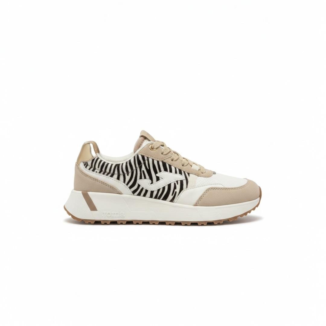 - Mezcla de material: construccion que combina panales sinteticos en tonos beige y blanco hueso para una amortiguacion confortable y una silueta estilizada, con el nombre de la marca grabado en el lateral,tiene una base de goma en color caramelo con diseño dentado para asegurar una traccion optima en superficies urbanas.
